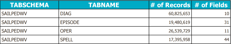 Summary of all tables analysed in the Data Quality Report