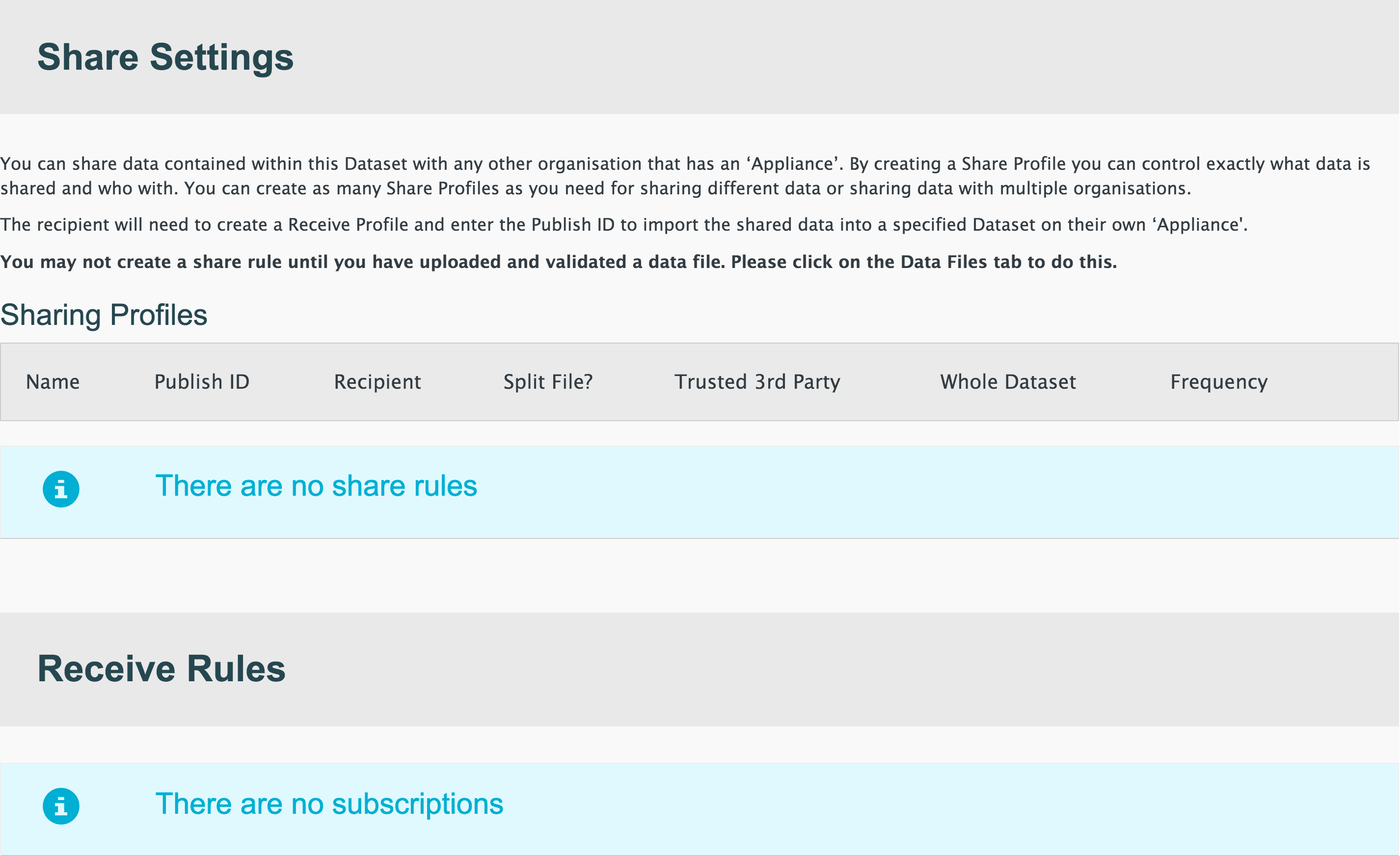 A defines which parts of the data are shared and which organisations have access to it. Users can create multiple to control exactly what is shared with each organisation.
